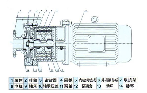 磁力泵以靜密封取代動(dòng)密封,使泵的過(guò)流部件處于完全密封狀態(tài),徹底解決了其他泵機(jī)械密封無(wú)法避免的跑、冒、滴之弊病。磁力泵選用耐腐蝕、高強(qiáng)度的工程塑料、鋼玉陶瓷、不銹鋼等作為制造材料,因此它具有良好的抗腐蝕性能,并可以使被輸送介質(zhì)免受污染。