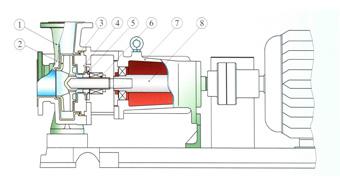 IHF氟塑料離心泵采用目前最為先進的外裝式四氟波紋管機械密封,其特點是能補償泵軸的徑向跳動,單端面密封外裝式、易裝卸、工作狀態(tài)直觀、耐腐耐磨密封性能好、擁有多層保護,延長了機封使用壽命;對于輸送含雜質(zhì)顆粒腐蝕性介質(zhì)時,可配用無冷卻水單端面硬對硬(碳化硅對碳化硅)機械密封,強堿與氫氟酸等特殊腐蝕性介質(zhì)配用無壓燒結(jié)碳化硅密封;用戶選型時需考慮到介質(zhì)中的固體含量及介質(zhì)特殊腐蝕性.
