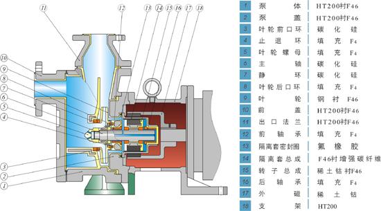 ZMD氟塑料磁力自吸泵其過(guò)流部件全部采用目前世界上耐腐蝕性能最優(yōu)秀“塑料王”(氟塑料)制造,泵體采用金屬外殼內(nèi)襯聚全氟乙丙烯(F46),泵蓋、葉輪均用金屬嵌件外包氟塑料整體燒結(jié)壓制而成 ,隔離套采用特殊材料制造,具有高強(qiáng)度的力學(xué)性能,消除了普通磁力泵存在的磁渦流現(xiàn)象。泵第一次使用前灌液后,第二次及以后使用則無(wú)需灌液,直接開機(jī)即可吸取輸送低于泵安裝位置以下的液體。自吸無(wú)泄漏的ZMD磁力泵是替代笨重液下泵進(jìn)口自吸泵的理想選擇用泵。