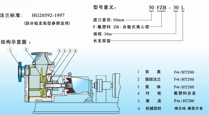 FZB氟塑料自吸泵是按國際標(biāo)準(zhǔn)并結(jié)合非金屬泵的工藝設(shè)計制造。泵體采用金屬外殼內(nèi)襯氟塑料,過流部件全部采用氟塑料合金制造,泵蓋、