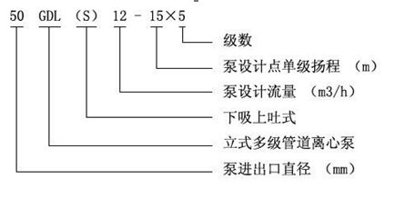 五、GDL型立式多級(jí)管道離心泵 型號(hào)意義: