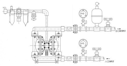 QBY氟塑料氣動(dòng)隔膜泵系統(tǒng)連接示意圖: